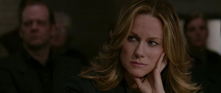 Дальше «Шесть демонов Эмили Роуз» идут по традиционной трёхактной структуре, в которой сюжет двигается вперёд за счёт судебного слушания и действий адвокатов, а внимание зрителя удерживают демоническими вставками и жуткой Дженнифер Карпентер. Если вкратце, то структурно «Эмили Роуз» выглядит следующим образом: